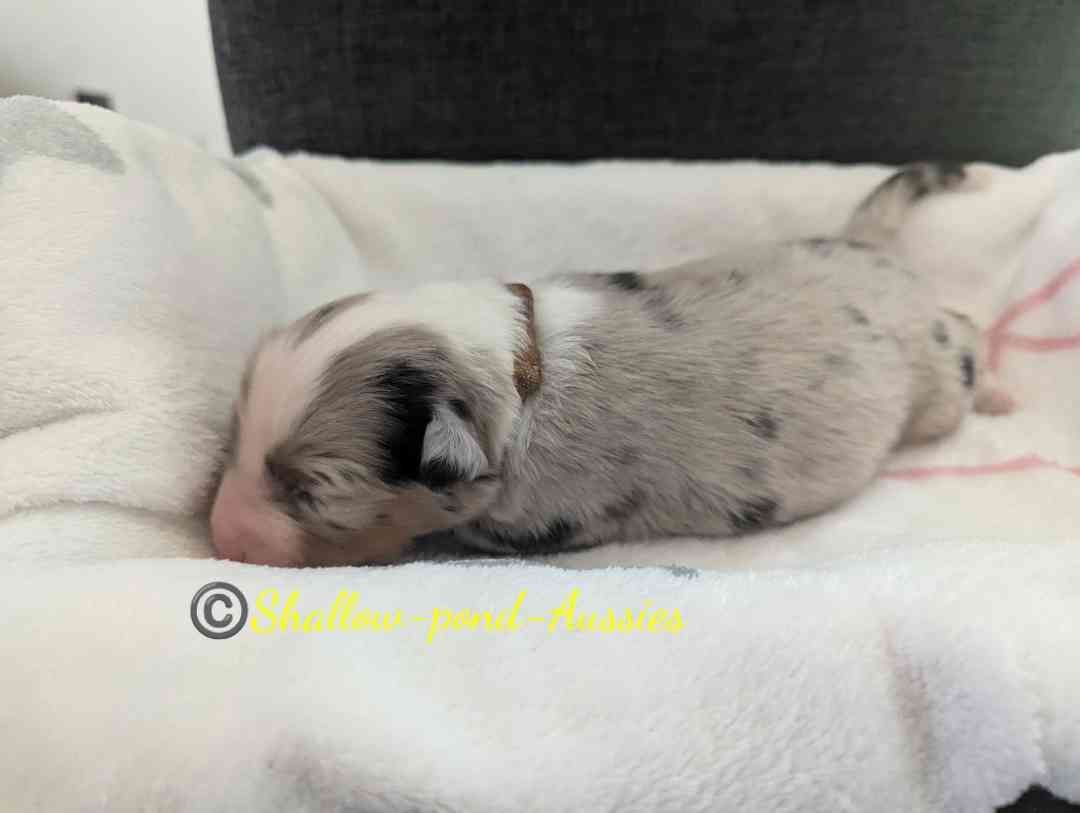 Am 09.09.2024 hat Kate und 7 wunderbare Welpen geschenkt. Es sind 1 Rüde in black tri und 6 Hündinnen in blue merle, black tri und red tri.
